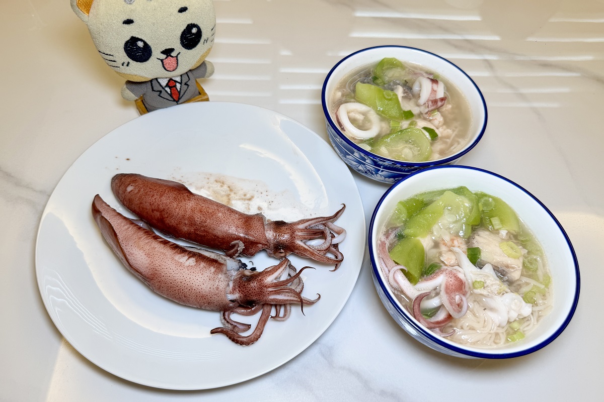 澎湖以海產聞名,尤其小卷必吃。澎湖有很多店家賣小卷麵線/米粉,但本貓吃過最好吃的小卷麵線卻是「享玩樂民宿」老闆娘現煮的小卷麵線!